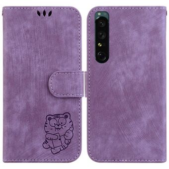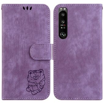 For Sony Xperia 1 IV Little Tiger Embossed Leather Phone Case(Purple)