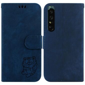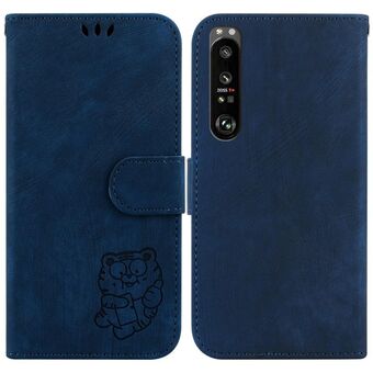 For Sony Xperia 1 IV Little Tiger Embossed Leather Phone Case(Dark Blue)