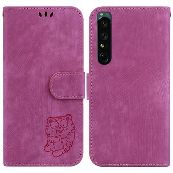 For Sony Xperia 1 IV Little Tiger Embossed Leather Phone Case(Rose Red)