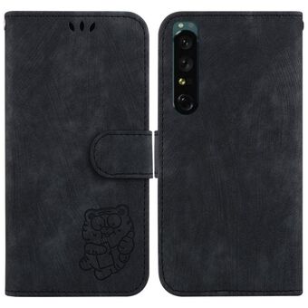 For Sony Xperia 1 IV Little Tiger Embossed Leather Phone Case(Black)