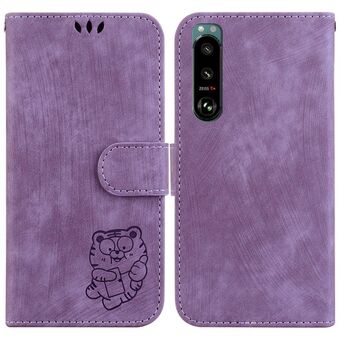 For Sony Xperia 5 III Little Tiger Embossed Leather Phone Case(Purple)