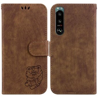 For Sony Xperia 5 III Little Tiger Embossed Leather Phone Case(Brown)