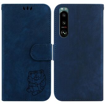 For Sony Xperia 5 III Little Tiger Embossed Leather Phone Case(Dark Blue)
