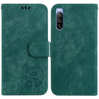 For Sony Xperia 10 III Little Tiger Embossed Leather Phone Case(Green)