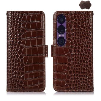 For Sony Xperia 1 VII Crocodile Top Layer Cowhide Leather Phone Case(Brown)