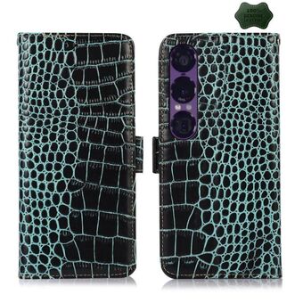 For Sony Xperia 1 VII Crocodile Top Layer Cowhide Leather Phone Case(Green)