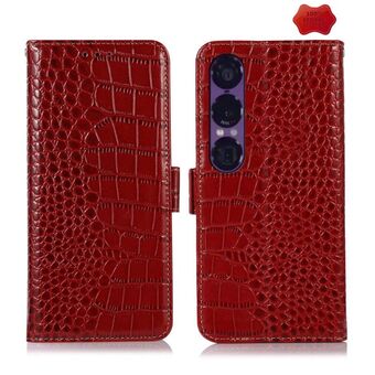 For Sony Xperia 1 VII Crocodile Top Layer Cowhide Leather Phone Case(Red)