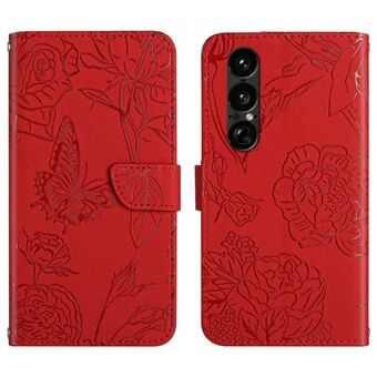 For Sony Xperia 1 VII HT03 Skin Feel Butterfly Embossed Flip Leather Phone Case(Red)