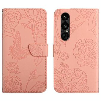 For Sony Xperia 1 VII HT03 Skin Feel Butterfly Embossed Flip Leather Phone Case(Pink)