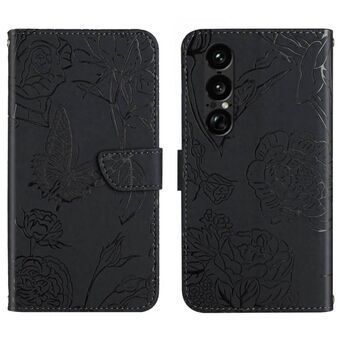 For Sony Xperia 1 VII HT03 Skin Feel Butterfly Embossed Flip Leather Phone Case(Black)