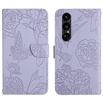 For Sony Xperia 1 VII HT03 Skin Feel Butterfly Embossed Flip Leather Phone Case(Purple)