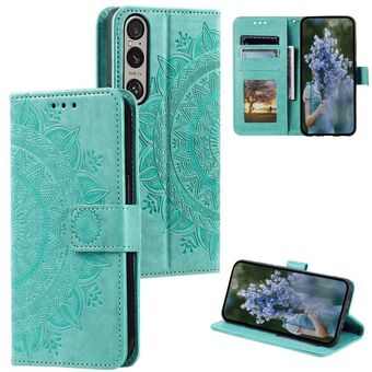 For Sony Xperia 1 VII Totem Flower Embossed Leather Phone Case with Lanyard(Green)