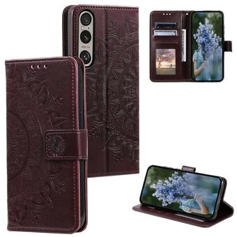 For Sony Xperia 1 VII Totem Flower Embossed Leather Phone Case with Lanyard(Brown)