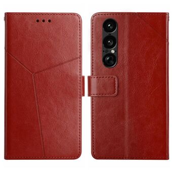 For Sony Xperia 1 VII Y-shaped Pattern Flip Leather Phone Case(Brown)