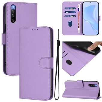 For Sony Xperia 10 IV Skin Feel Solid Color Leather Phone Case with Lanyard(Violet)