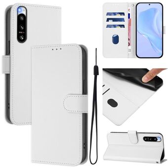 For Sony Xperia 5 IV Skin Feel Solid Color Leather Phone Case with Lanyard(White)