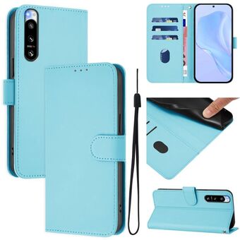 For Sony Xperia 5 IV Skin Feel Solid Color Leather Phone Case with Lanyard(Lake Blue)