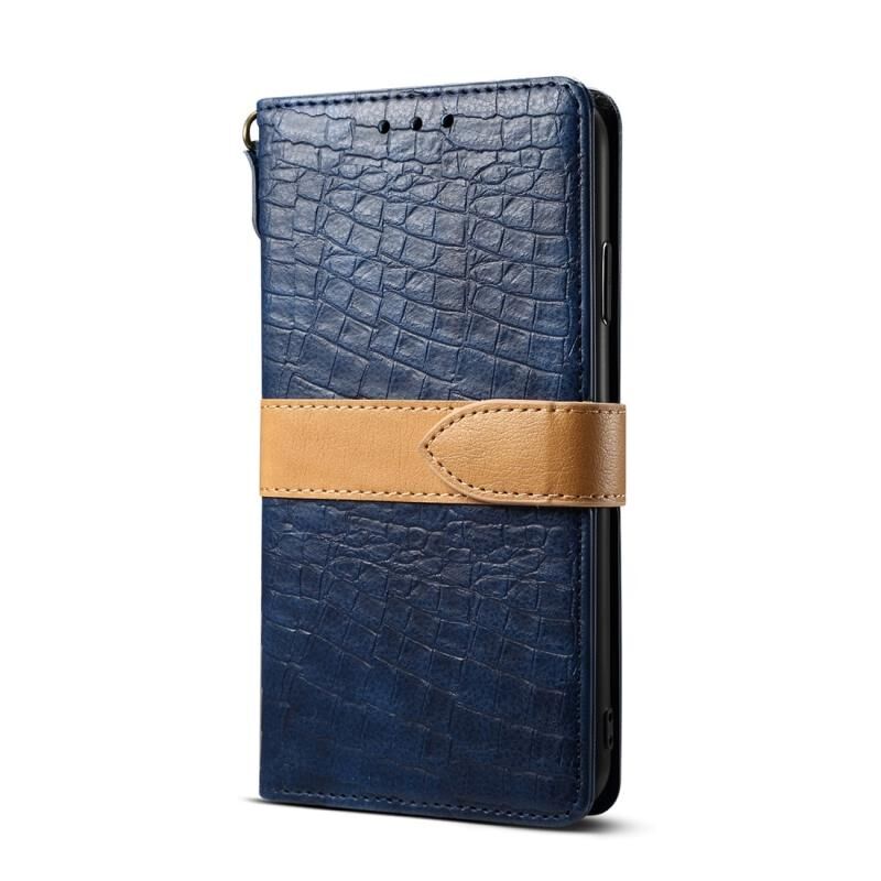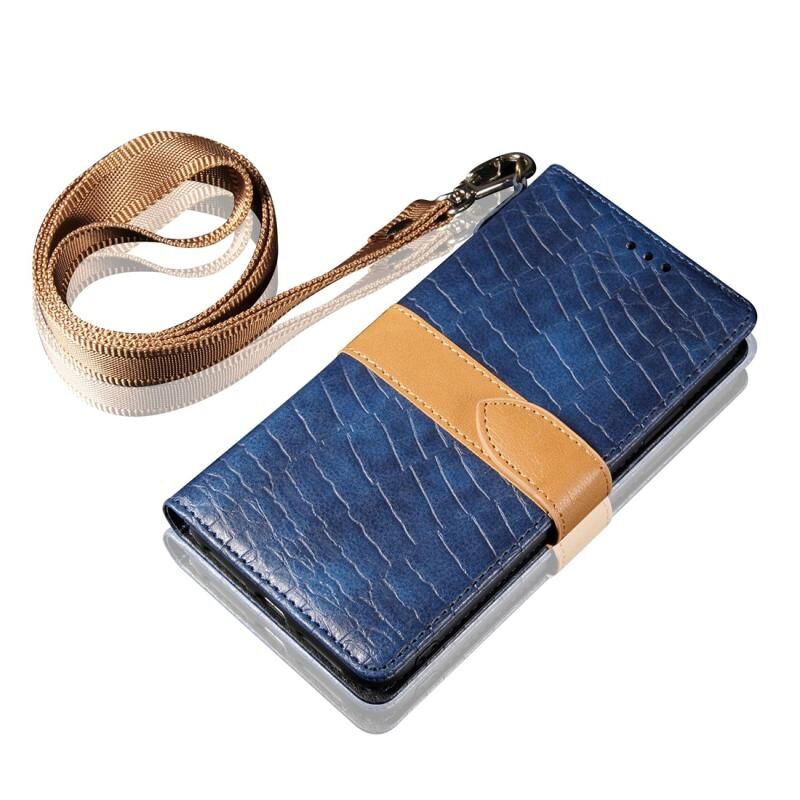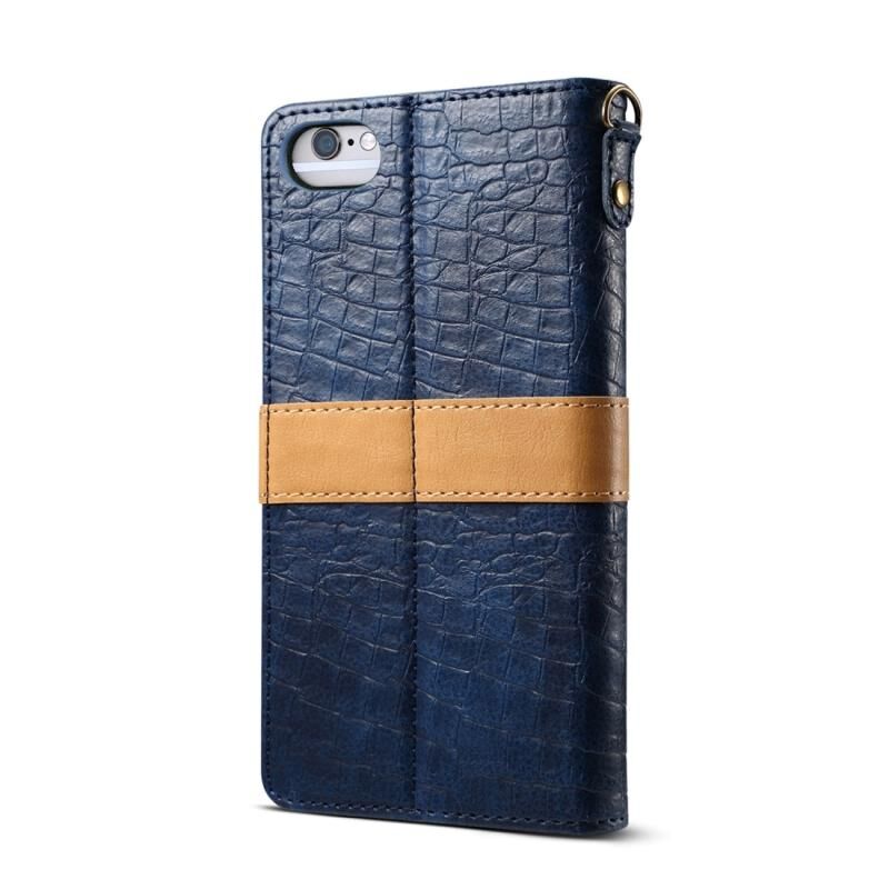 Θήκη δέρματος PU οριζόντιας αναδίπλωσης για iPhone 6 / 6s με υφή κροκόδειλου και ραφές, με πορτοφόλι & βάση & θήκες καρτών & κορδόνι (Μαύρο)