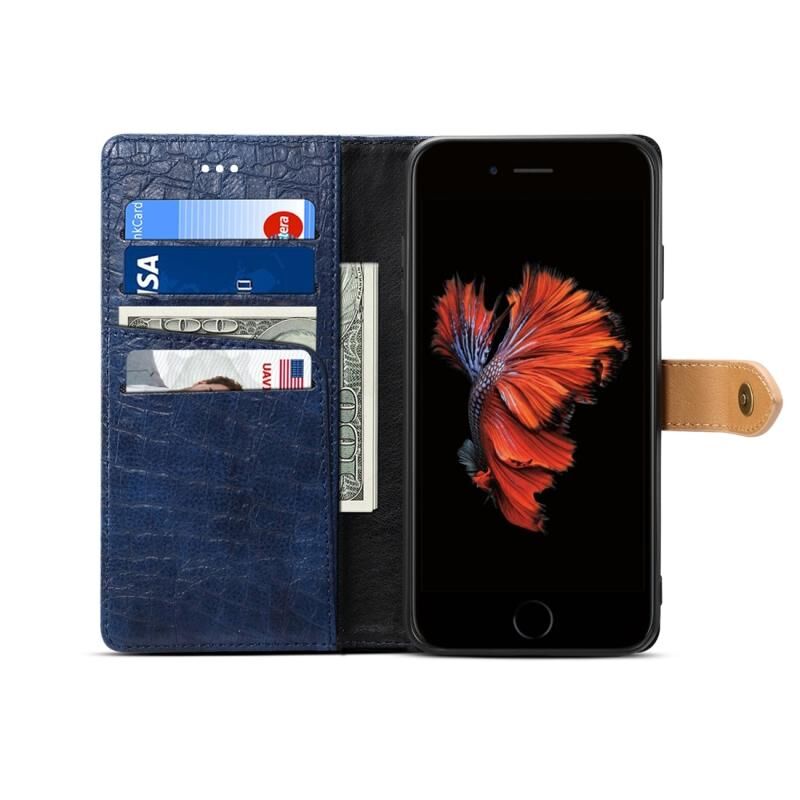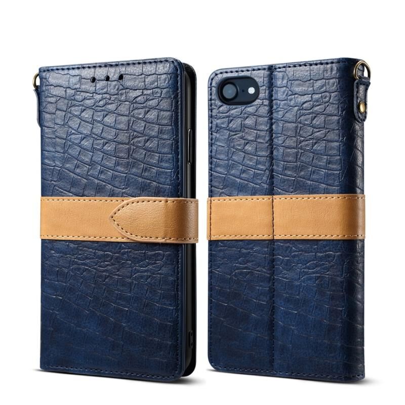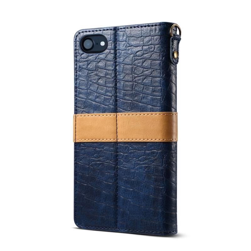 Θήκη δέρματος PU οριζόντιας αναδίπλωσης για iPhone 7 / 8 με υφή κροκόδειλου και ραφές, με πορτοφόλι & βάση & θήκες καρτών & κορδόνι (Μαύρο)