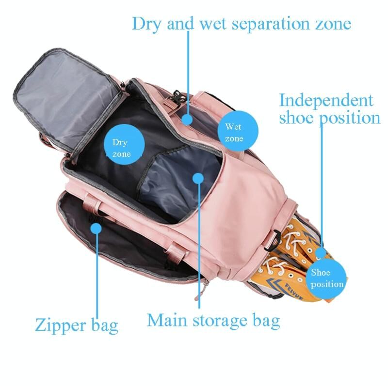 2. Independent shoe position design, dry and wet separation bag, reasonable layout distribution, more humane, more functions