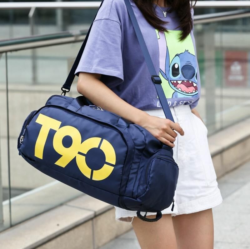Sports Fitness Bag Large Capacity Luggage Bag Dry Wet Separation With Shoes Position Hand-Held Backpack Travel Bag(Blue Yellow)