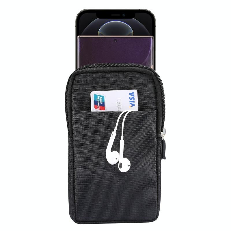 Sports Leisure Drawstring Horizontal Plate Hanging Waist Phone Waist Pack Leather Case, Suitable for 6.7-6.9 inch Smartphones(Black)