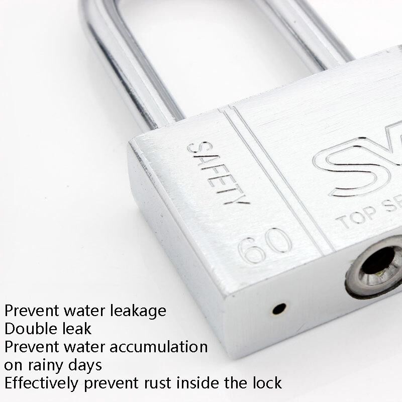 3. Features: double water leakage holes, prevent water accumulation in rainy days, effectively prevent rust in the lock, thick lock body, strong and firm, strong anti-theft, edge arc design, fine polishing, comfortable touch and no hurting hands