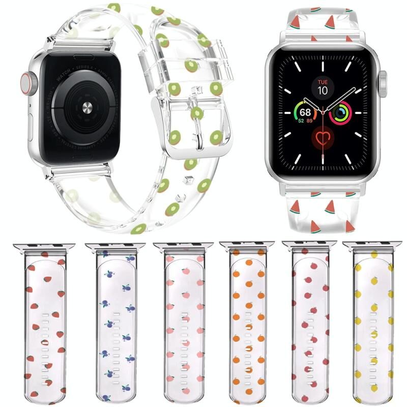 Λουρί ρολογιού Apple Watch Ultra 49mm & Watch Ultra 2 49mm / Series 9 & 8 & 7 45mm / SE 3 & SE 2 & 6 & SE & 5 & 4 44mm / 3 & 2 & 1 42mm με τετράγωνη αγκράφα και διαφανές χρώμα (Λεμόνι)