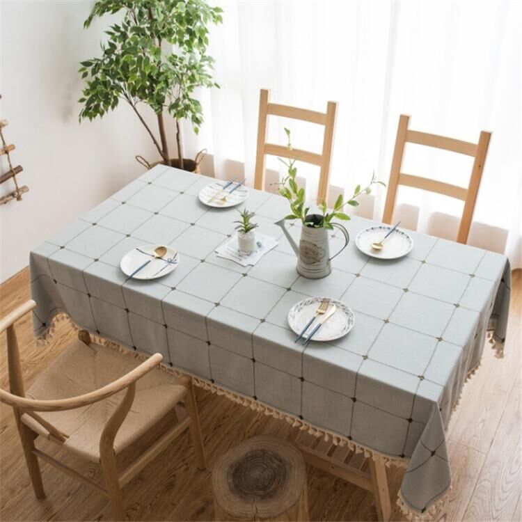 Τετράγωνο πλέγμα κεντημένο τραπεζομάντιλο καθαρό χρώμα βαμβάκι λινό φούντα ορθογώνιο τραπεζάκι καφέ, μέγεθος: 100x160cm (καφέ)