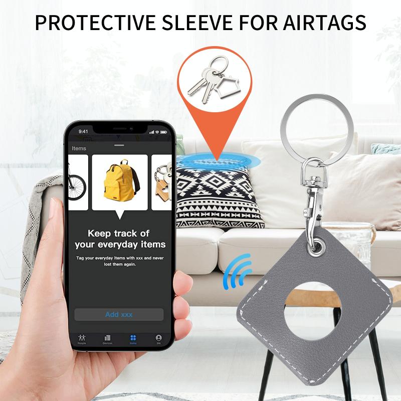 Θήκη από τεχνητό δέρμα PU, ανθεκτική σε κρούσεις και γρατζουνιές, με κρίκο και θηλιά για AirTag (Καφέ) (MOMAX)