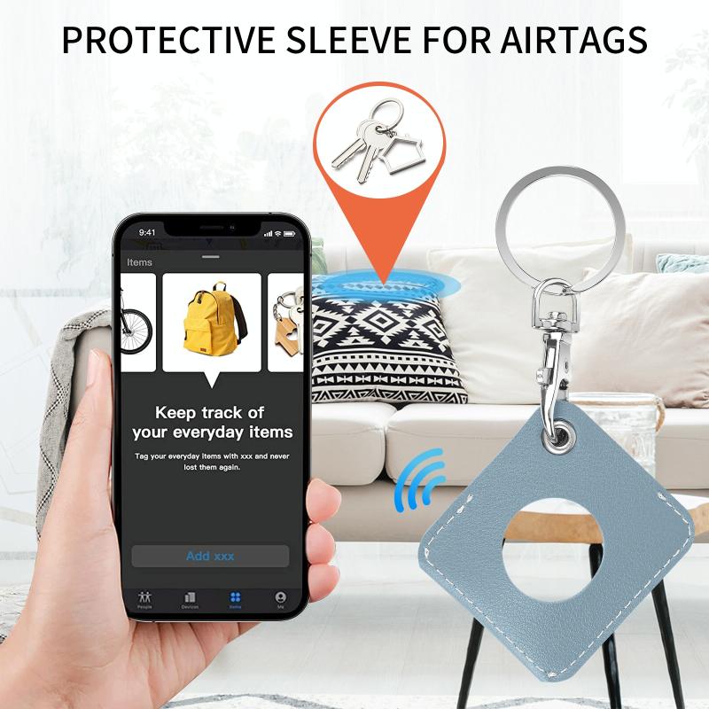 Θήκη από τεχνητό δέρμα PU, ανθεκτική σε κρούσεις και γρατζουνιές, με κρίκο και θηλιά για AirTag (Καφέ) (MOMAX)