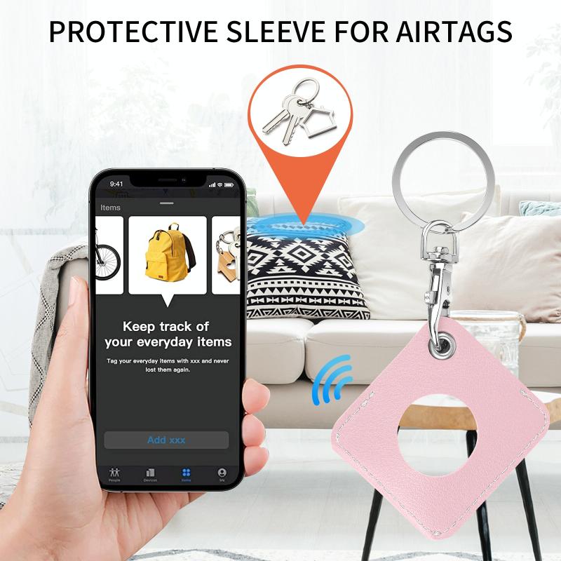 Θήκη από τεχνητό δέρμα PU, ανθεκτική σε κρούσεις και γρατζουνιές, με κρίκο και θηλιά για AirTag (Καφέ) (MOMAX)