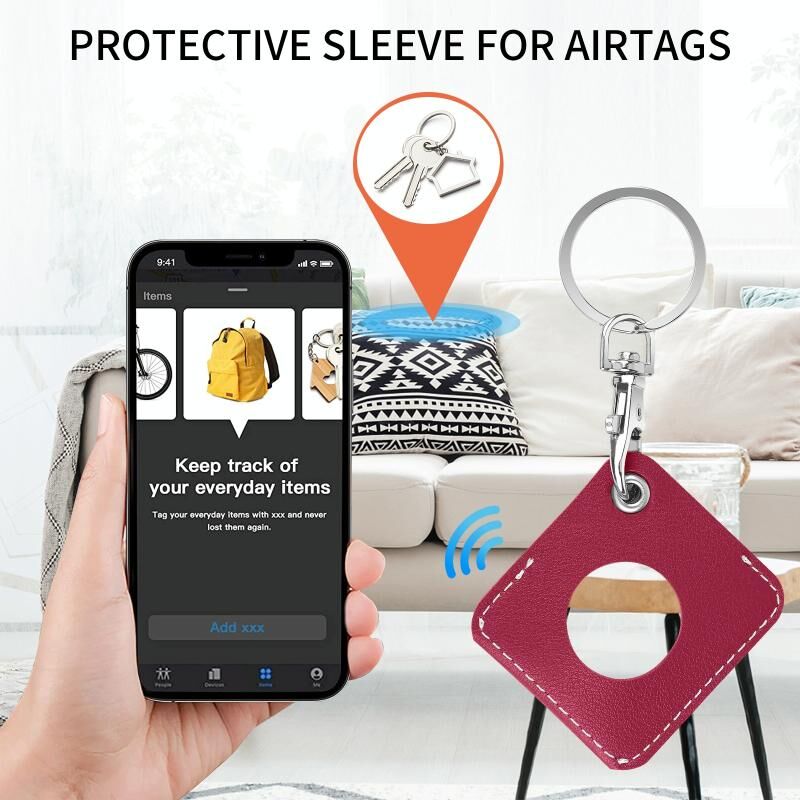 Θήκη από τεχνητό δέρμα PU, ανθεκτική σε κρούσεις και γρατζουνιές, με κρίκο και θηλιά για AirTag (Καφέ) (MOMAX)