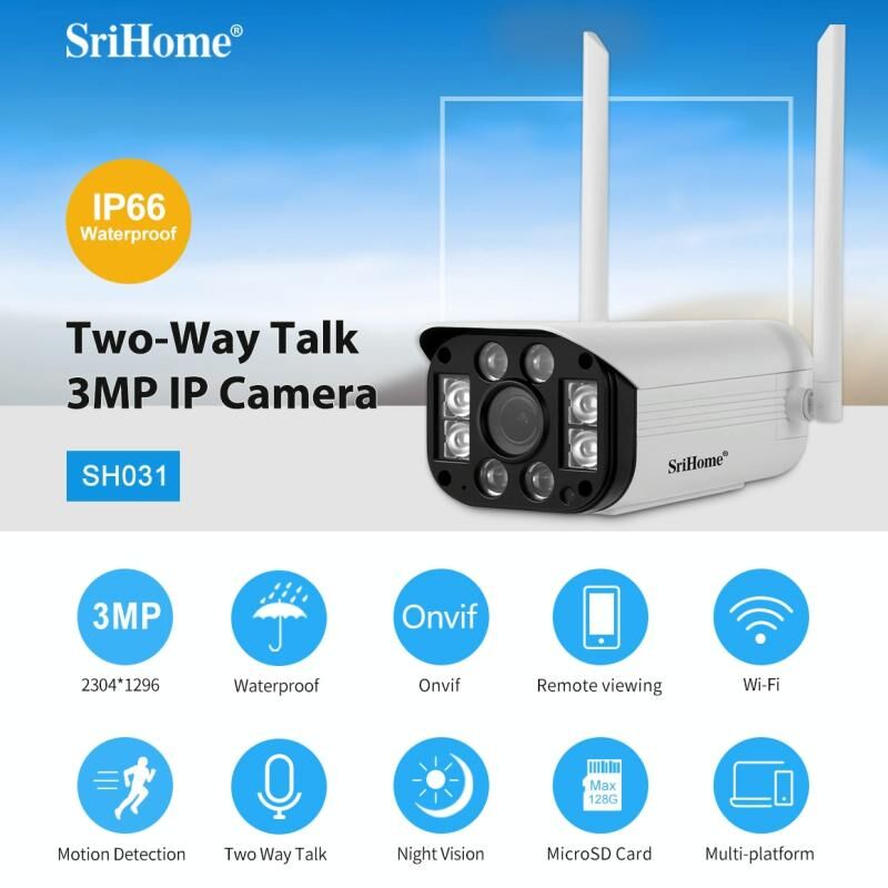 SriHome SH031 3.0 Million Pixels 1296P HD IP Camera, Support Two Way Talk / Motion Detection / Night Vision / TF Card, EU Plug (SriHome)