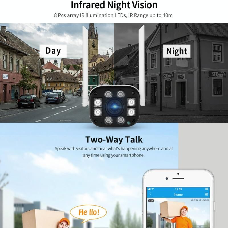6. Alarm: Support motion detectioin alarm, phone push alarm