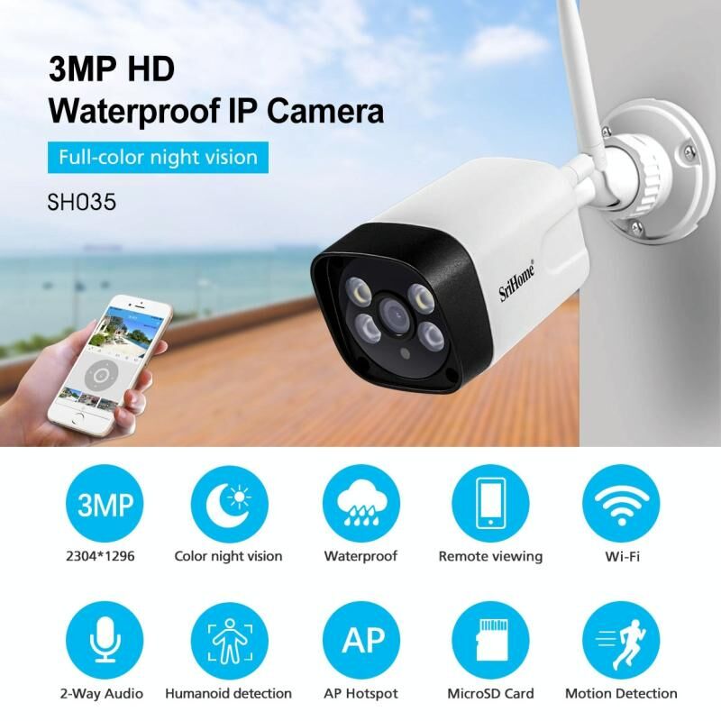 SriHome SH035 3.0 Million Pixels 1296P HD IP Camera, Support Two Way Audio / Motion Detection / Humanoid Detection / Full-color Night Vision / TF Card, EU Plug (SriHome)