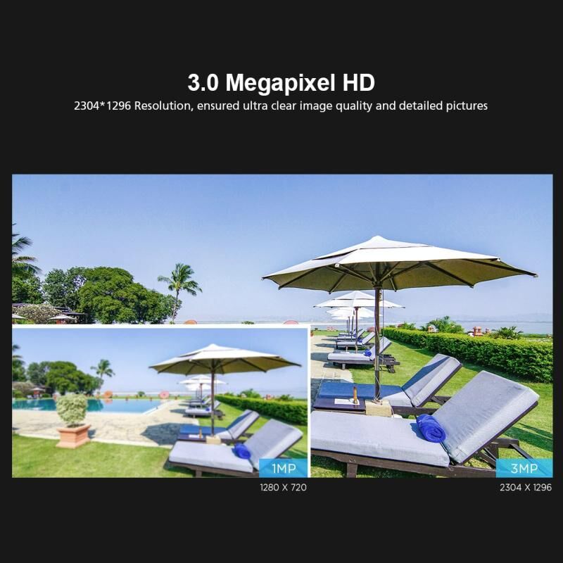 1. FHD: 3MP,1296P(2304x1296), H.264 / H.265