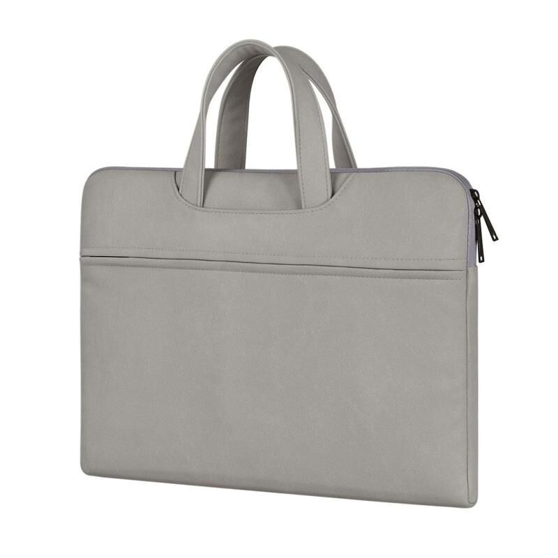 ST06 Αδιάβροχο PU δέρμα φερμουάρ κρυφό φορητό λουράκι One-shoulder τσάντα για φορητούς υπολογιστές 15,6 ιντσών, με ζώνη βαλίτσας (ανοιχτό γκρι)