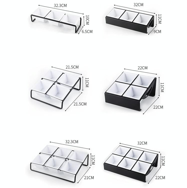7. Διαστάσεις: 1: Τύπος Α 3 διαμερίσματα: 32,3 x 6,5 x 10 cm, Τύπος Α 4 διαμερίσματα: 32,3 x 6,5 x 10 cm, Τύπος Α 4 διαμερίσματα: 32,3 x 6,5 x 10 cm: 21,5 x 21,5 x 11 cm, Τύπος Α 6 διαμερίσματα: 4 διαμερίσματα: 21,5 x 21,5 x 11 cm, Τύπος Α 6 διαμερίσματα: 21,5 x 21,5 x 11 cm: 32 x 9 x 11 cm, 4 διαμερίσματα για τον τύπο Β: 22 x 22 x 11 cm, 6 διαμερίσματα για τον τύπο Β: 32 x 22 x 11 cm