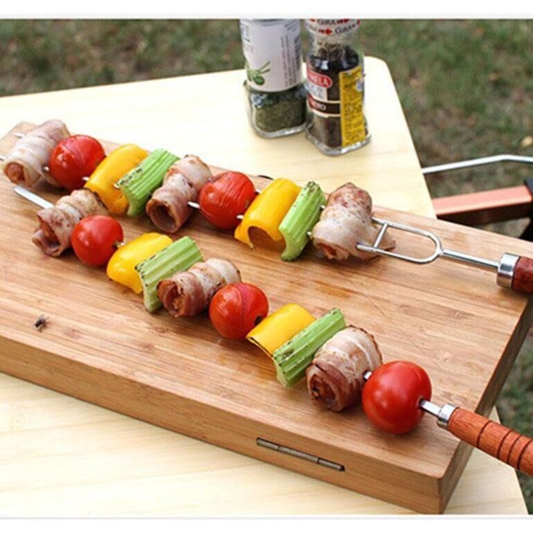 1. Υλικό: ανοξείδωτο ατσάλι, ξύλο 2. Χρήση: για μπάρμπεκιου 3. Προδιαγραφές: 6 πιρούνια + 2 σπάτουλες + χρωματιστό κουτί, 6 στικ + χρωματιστό κουτί, 4 στικ + σακούλα PP 4. Μέγεθος: 43x1,5 εκ. 5. Βάρος: πιρούνι: 34 γρ., σπάτουλα: 12 γρ. 6. Χαρακτηριστικά: ξύλινη λαβή, ανθεκτική στη θερμότητα και αντι-καυστική