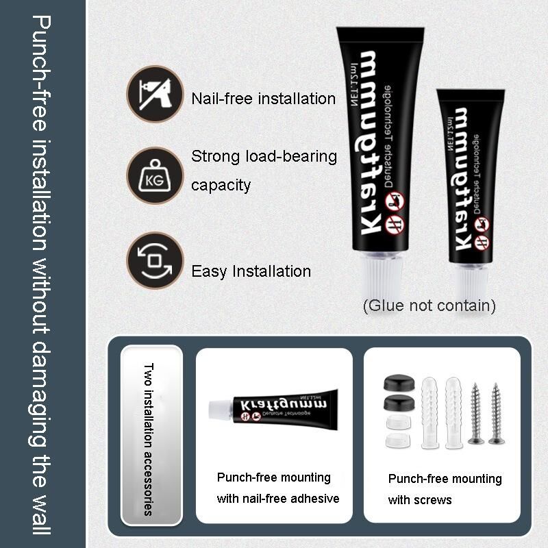 7. Εγκατάσταση χωρίς διάτρηση δεν βλάπτει τον τοίχο, εγκατάσταση χωρίς καρφιά, ισχυρή φέρουσα ικανότητα, εύκολη εγκατάσταση, δύο είδη μεθόδων εγκατάστασης, διανομή βιδών διάτρησης (χωρίς κόλλα)