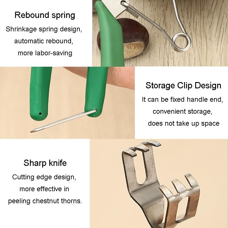 3. Stainless steel chestnut thorns clip, non-slip handle design, not slippery when using, not hurt the hand more secure