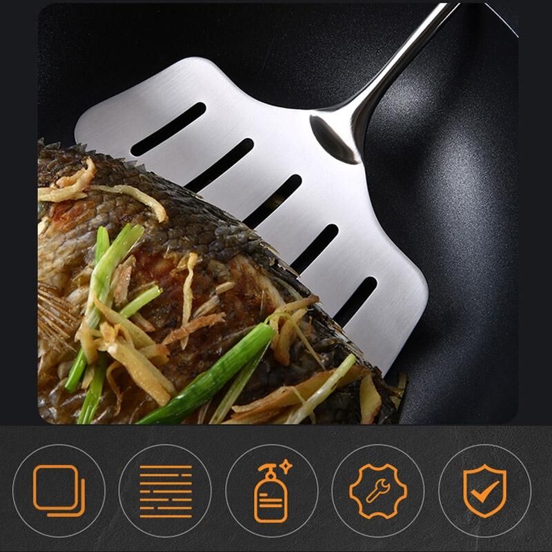 6. Features: beautiful and practical, not easy to rust, high temperature resistance, hollowed out oil drain, comfortable heat insulation and anti-scalding, easy to scratch and easy to clean, smooth edges without hurting hands, durable and versatile