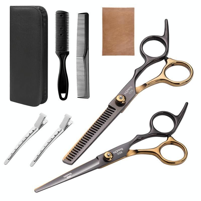 Stainless Steel Haircutting Scissors Set Hair Cutting Tools, Spec: 8-in-1 Black Gold
