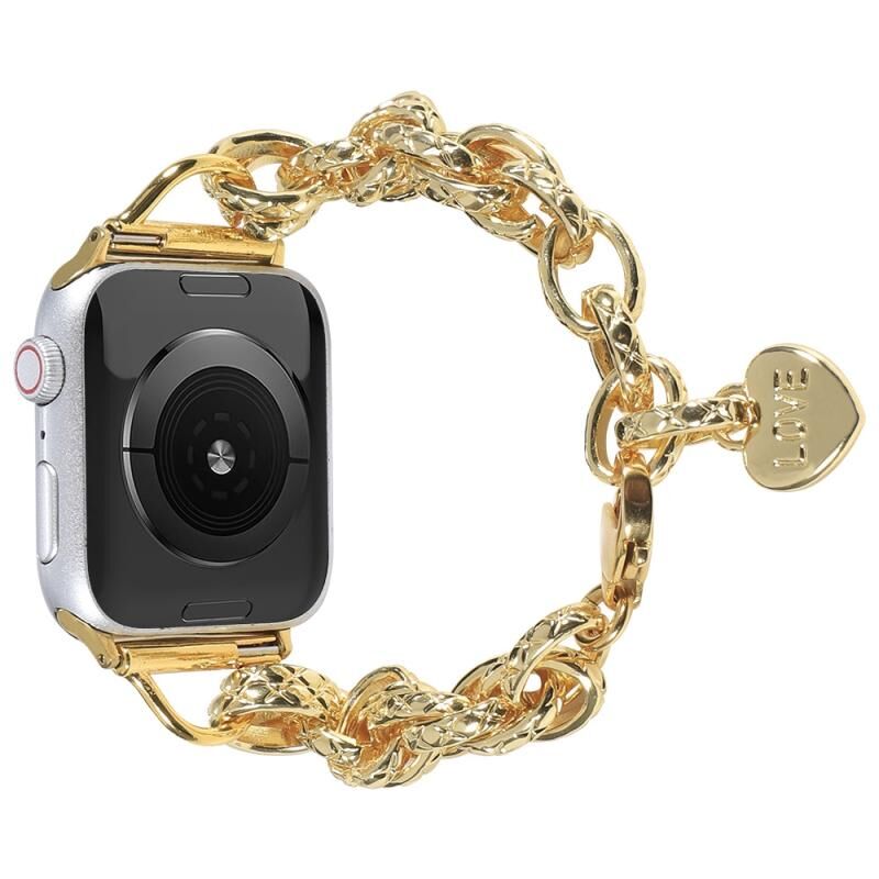 Λουρί για Apple Watch Ultra 49mm & Watch Ultra 2 49mm / Series 9 & 8 & 7 45mm / SE 3 & SE 2 & 6 & SE & 5 & 4 44mm / 3 & 2 & 1 42mm από ανοξείδωτο ατσάλι με μενταγιόν καρδιάς (Χρυσός)