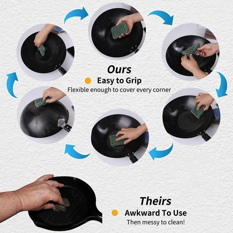 3. Made of tightly coiled stainless steel, it can scrub and rinse thoroughly, perfect for removing grease and grime from pots, baking sheets, etc.