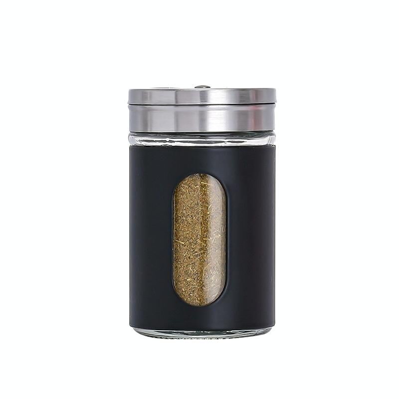 Ανοξείδωτο χάλυβα καπάκι γυάλινο βάζο καρυκευμάτων Προμήθειες κουζίνας (μαύρο)