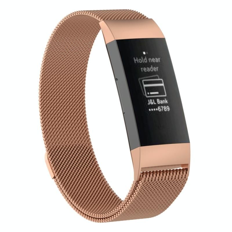 Stainless Steel Magnet Watch Band for FITBIT Charge 3, Size:Large, 217x18mm(Rose Gold)