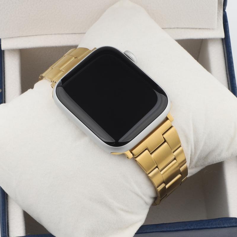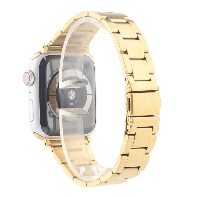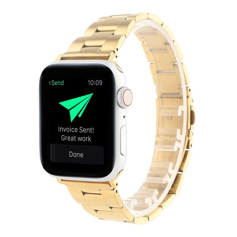 Stainless Steel Three Beads Hand Detachable Xiaoman Waist Strap Wristband For Series 7 45mm / 6 & SE & 5 & 4 44mm / 3 & 2 & 1 42mm(Gold)