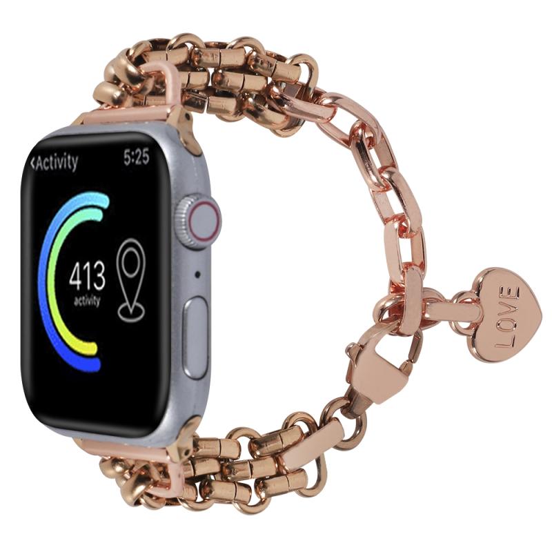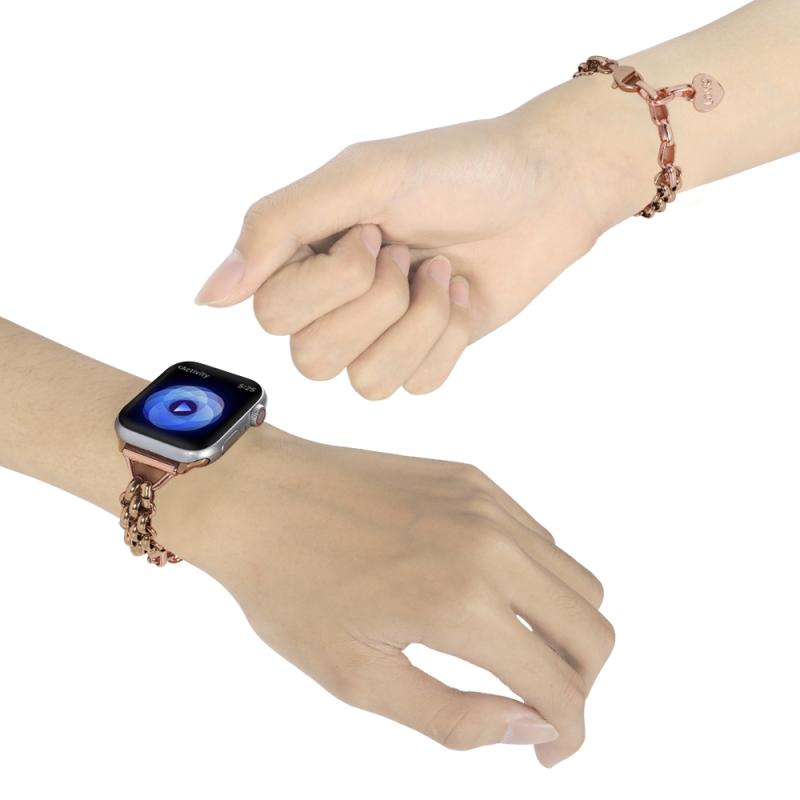 Λουρί ρολογιού από ανοξείδωτο ατσάλι με τρεις σειρές αλυσίδας για Apple Watch Series 9&8&7 41mm / SE 3&SE 2&6&SE&5&4 40mm / 3&2&1 38mm (Ροζ χρυσός)